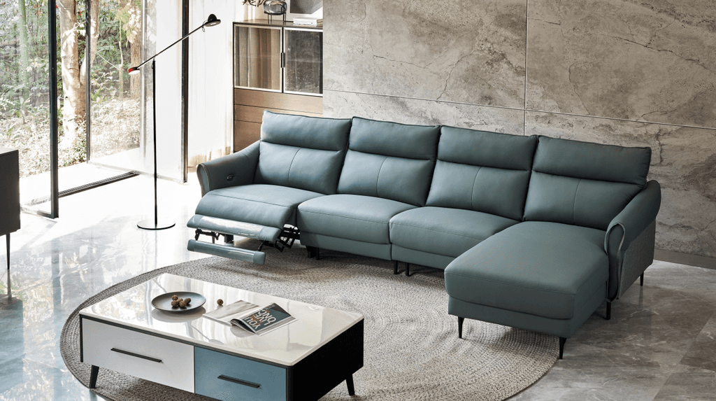 this L-shaped recliner effortlessly brings modern charm into